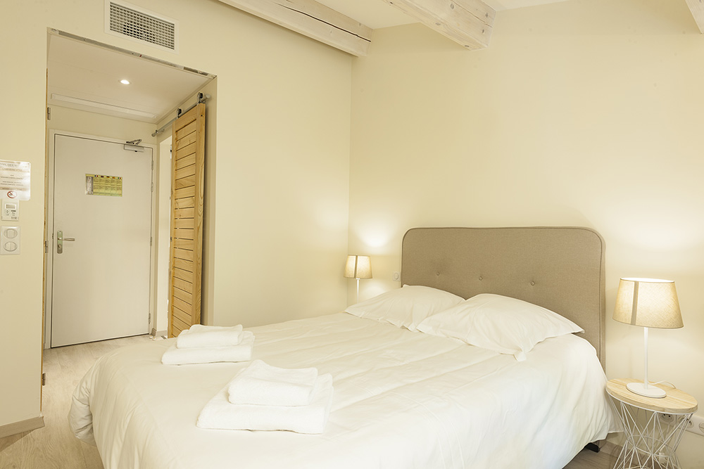 Pensée pour les voyageurs en quête de sérénité, cette chambre chaleureuse offre tout le confort nécessaire : literie de qualité, salle d’eau privative, climatisation, TV et déco aux tons naturels. Une invitation à la détente au cœur du village.
