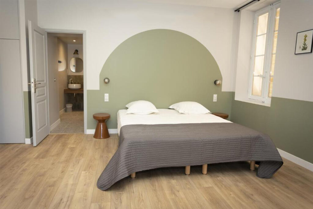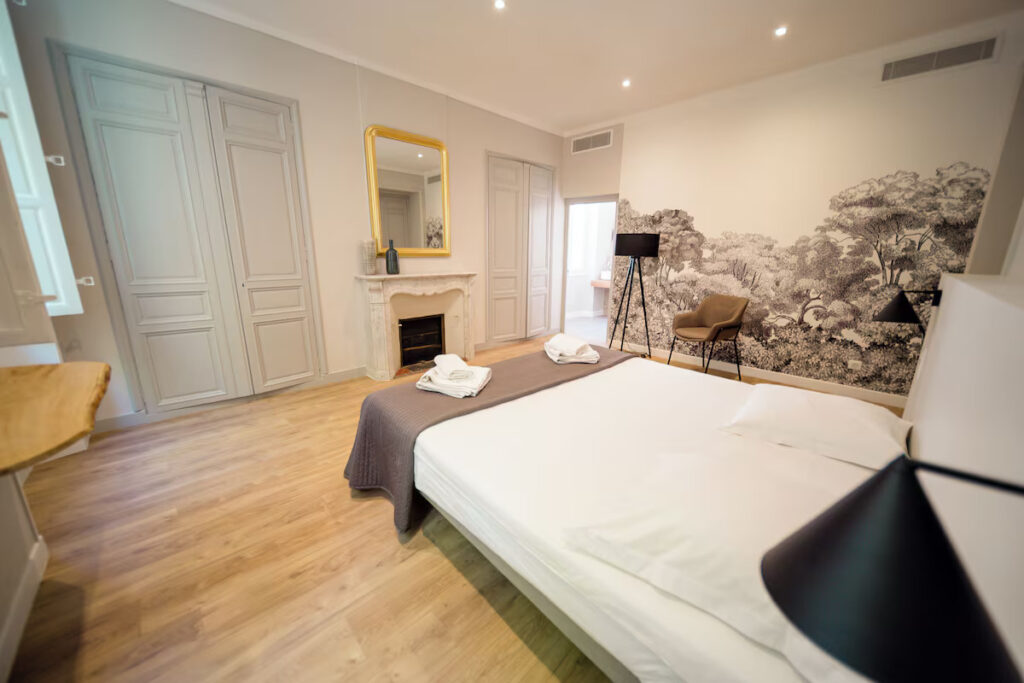 Ambiance douce et soignée dans cette chambre spacieuse au charme naturel. Une décoration élégante, une fresque apaisante et tout le confort pour un séjour relaxant en Provence.