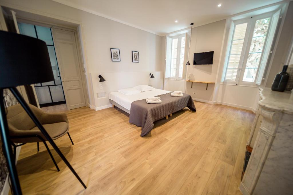 Spacieuse et lumineuse, cette chambre offre un accès à une terrasse privative avec vue sur la piscine sur le toit. Idéale pour profiter du soleil de Provence dans un cadre paisible et élégant.