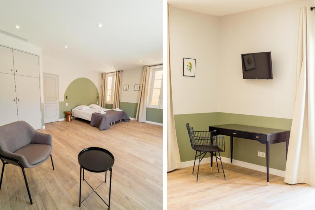 Cette chambre spacieuse au décor raffiné allie confort moderne et cachet de l’ancien dans une ambiance douce et apaisante. Parfaite pour un séjour en duo dans notre maison d’hôtes de caractère à Collobrières.